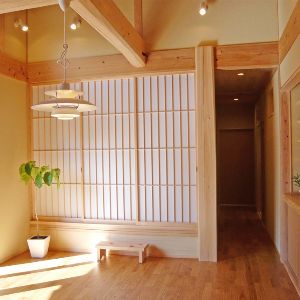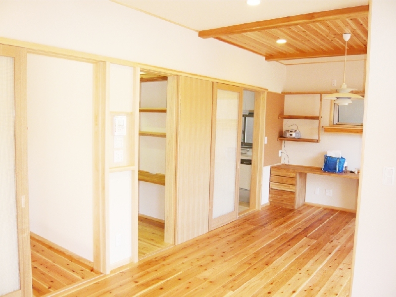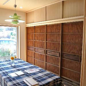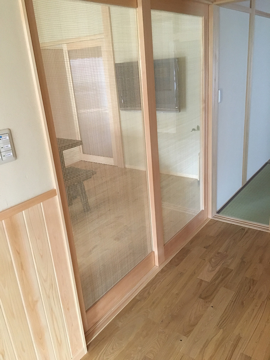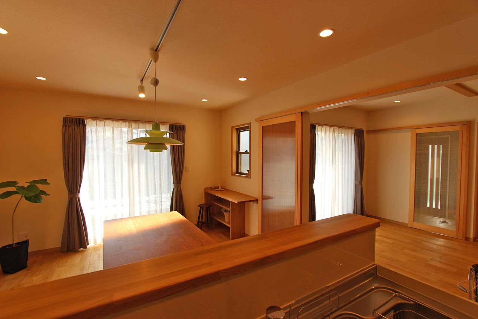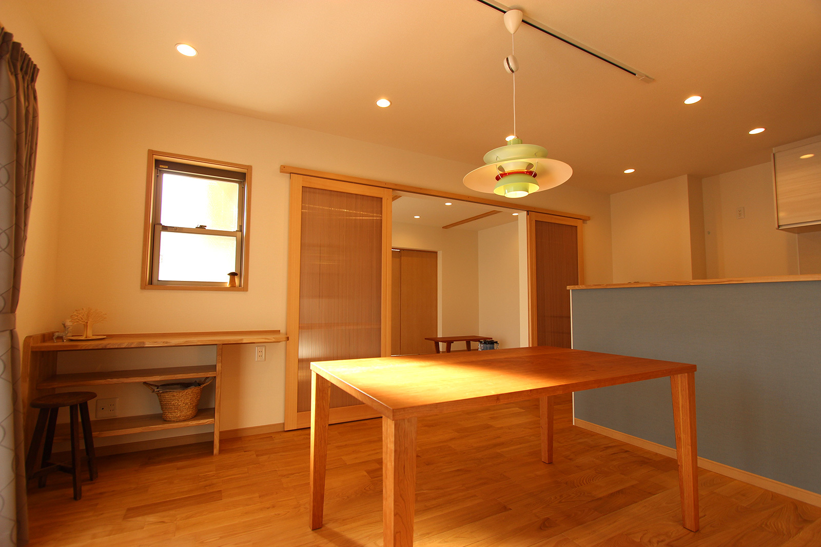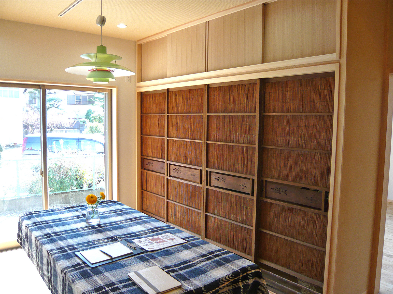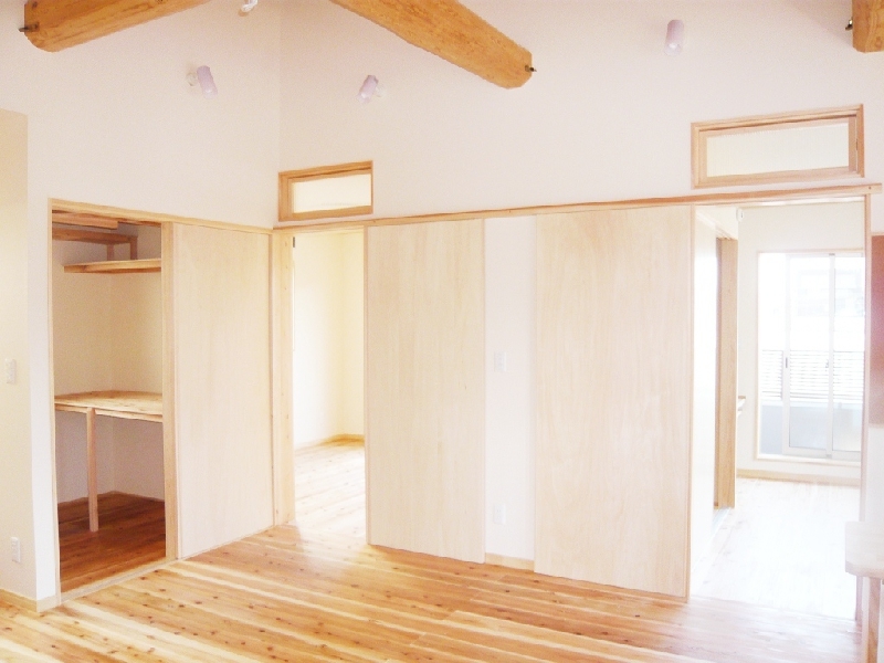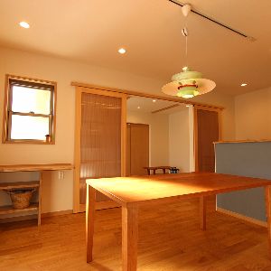 広い部屋を建具でしきり空間を分ける事ができる様にしてあります。