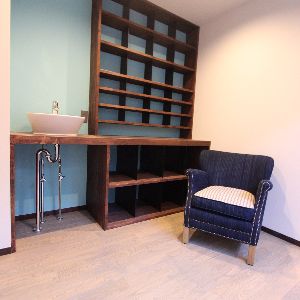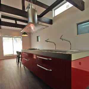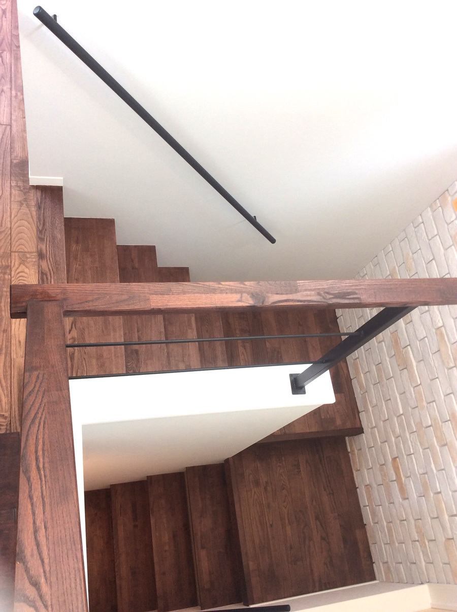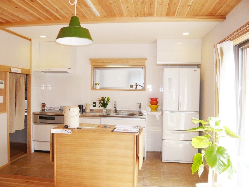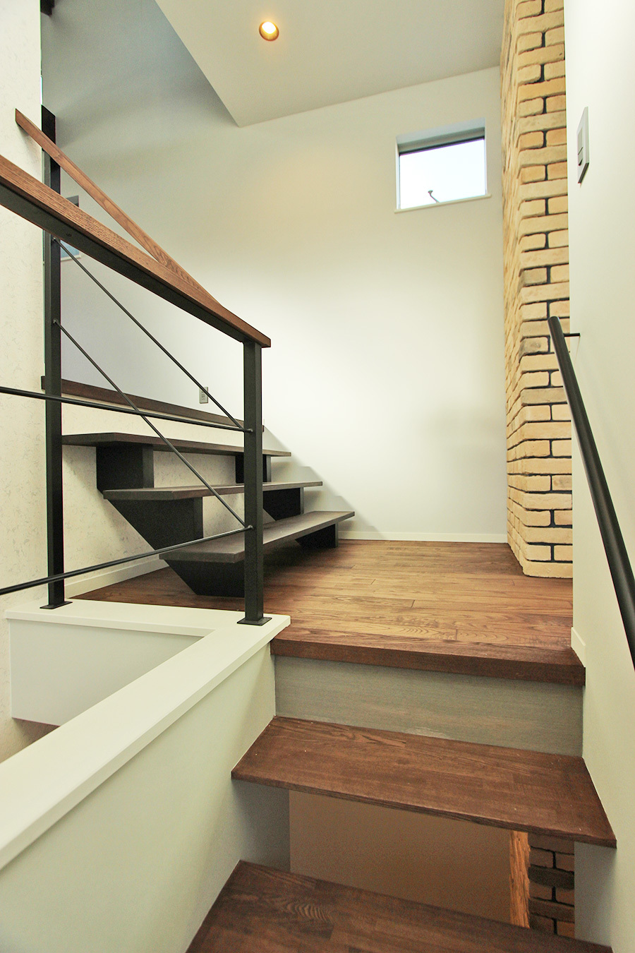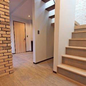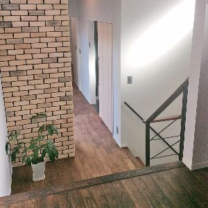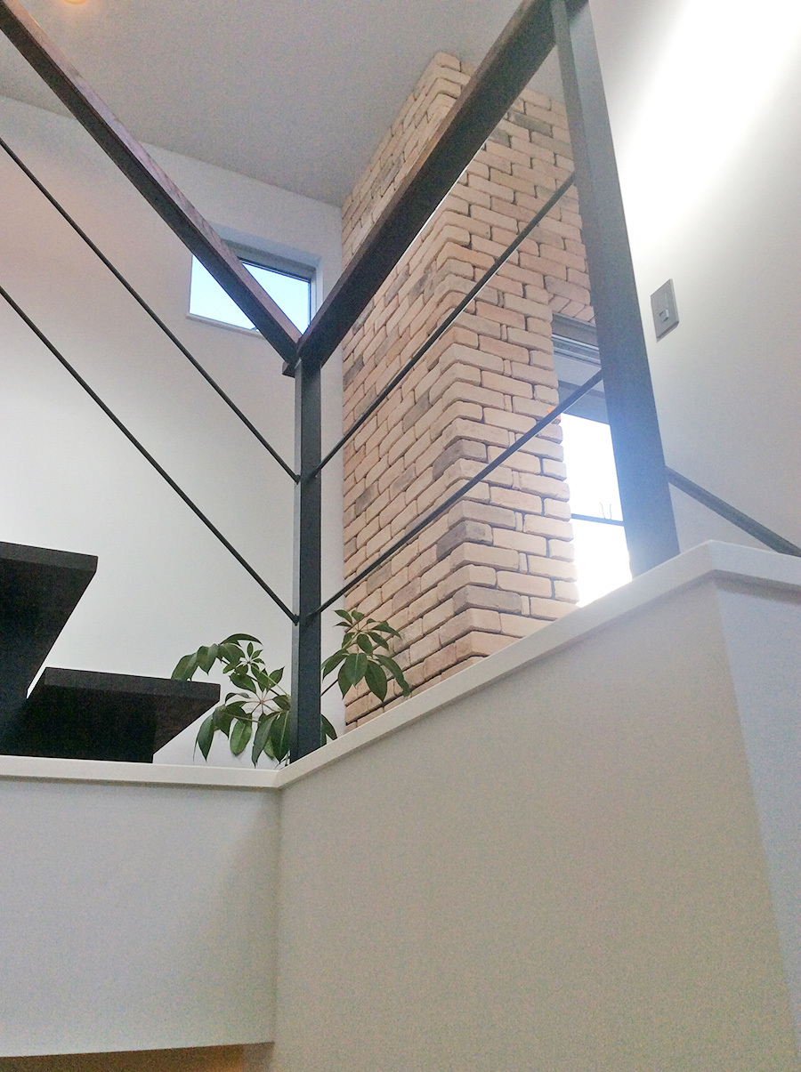 室内の壁にレンガをはったり、手作り本棚、キッチンの背面収納など、お客様のご要望を取り入れ、オリジナリティーあふれる家ができました。