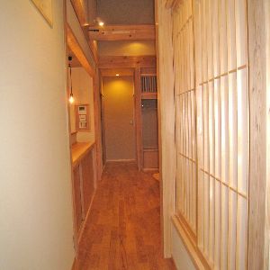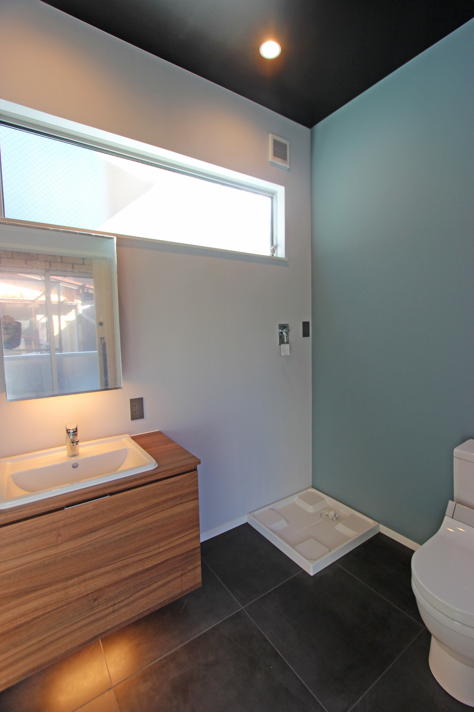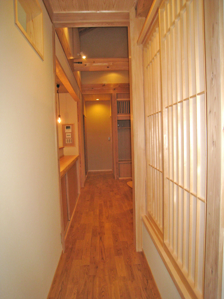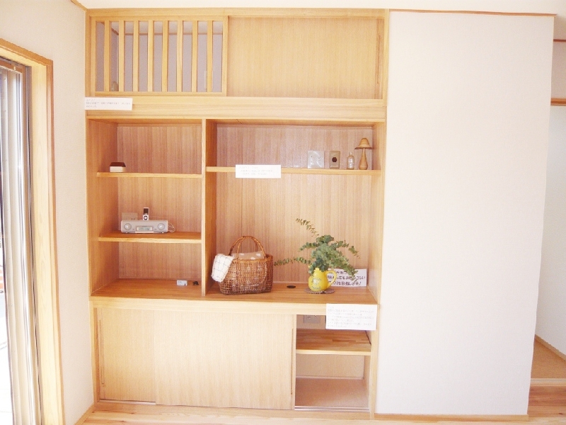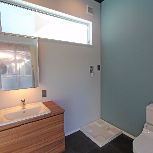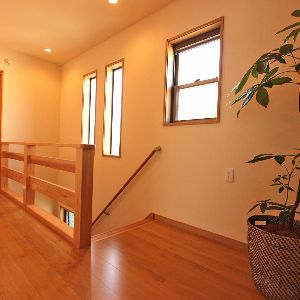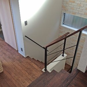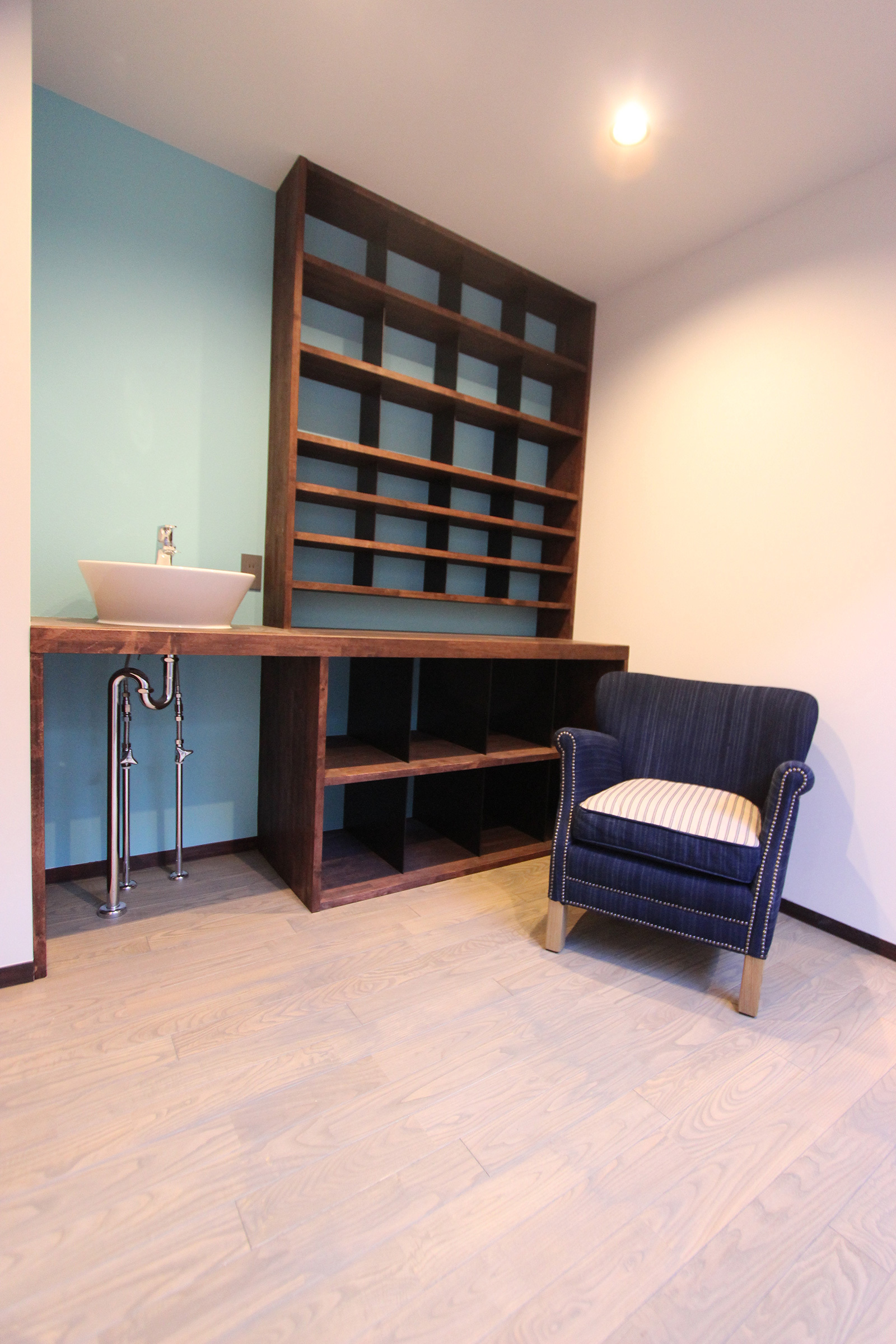 29坪+4(ロフト)の決して広い家ではありませんが、TV台を埋め込んだり、収納を増やす事によって、広さを感じられる家になりました。また、照明、カーテン、スイッチプレート、鏡、タオル掛けなど、施主さんのこだわりが感じられる素敵な家になりました。