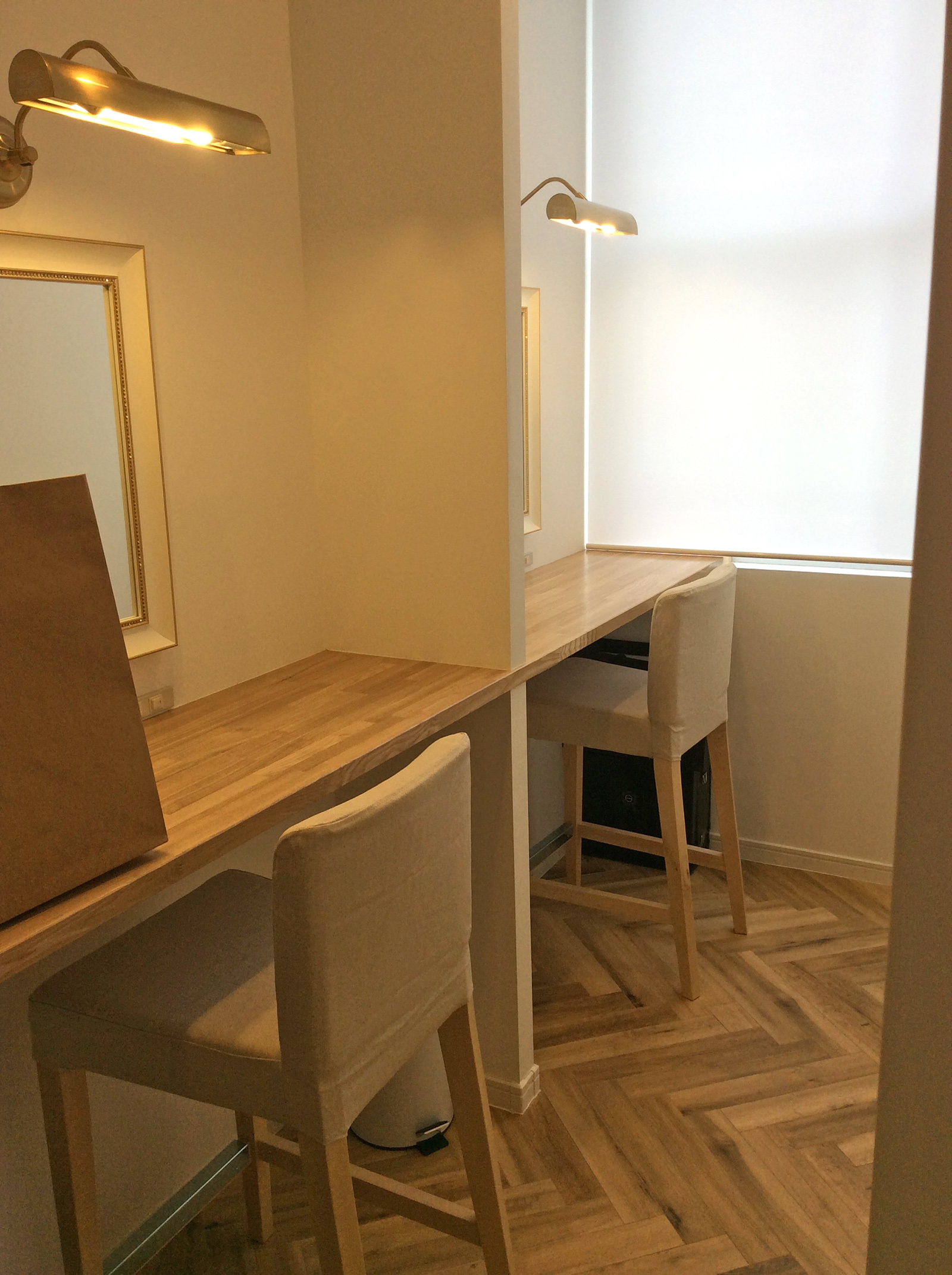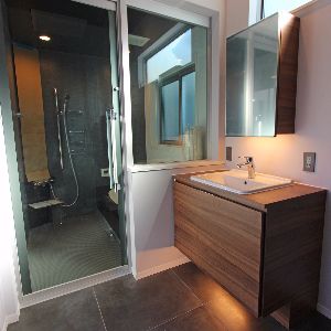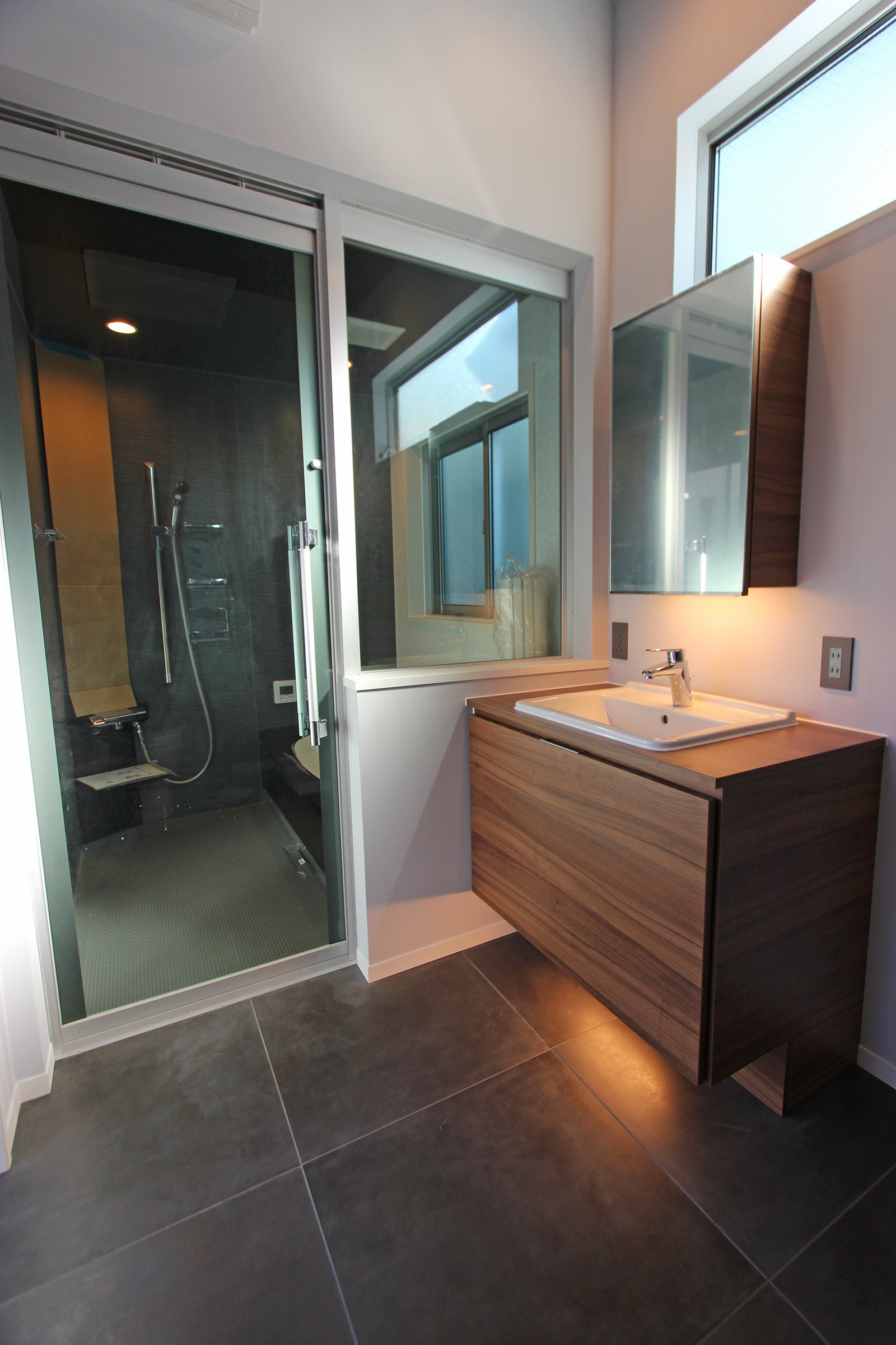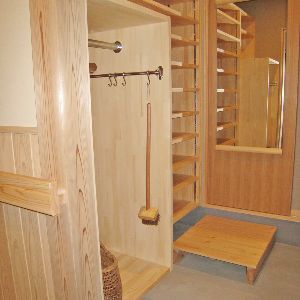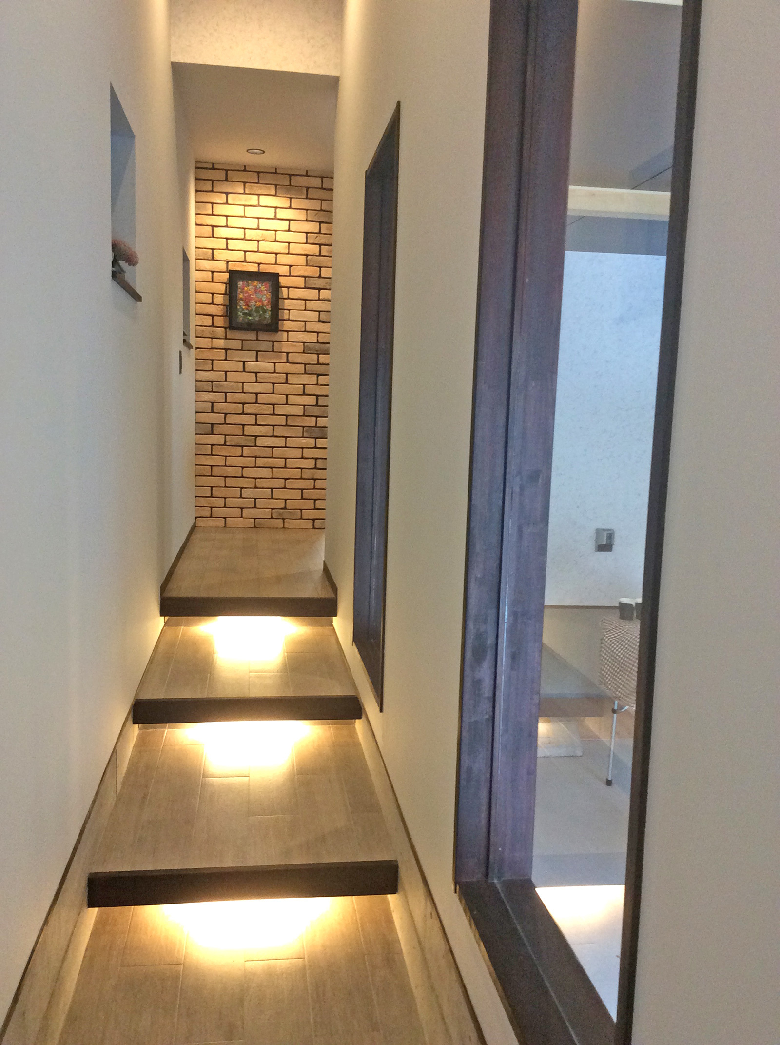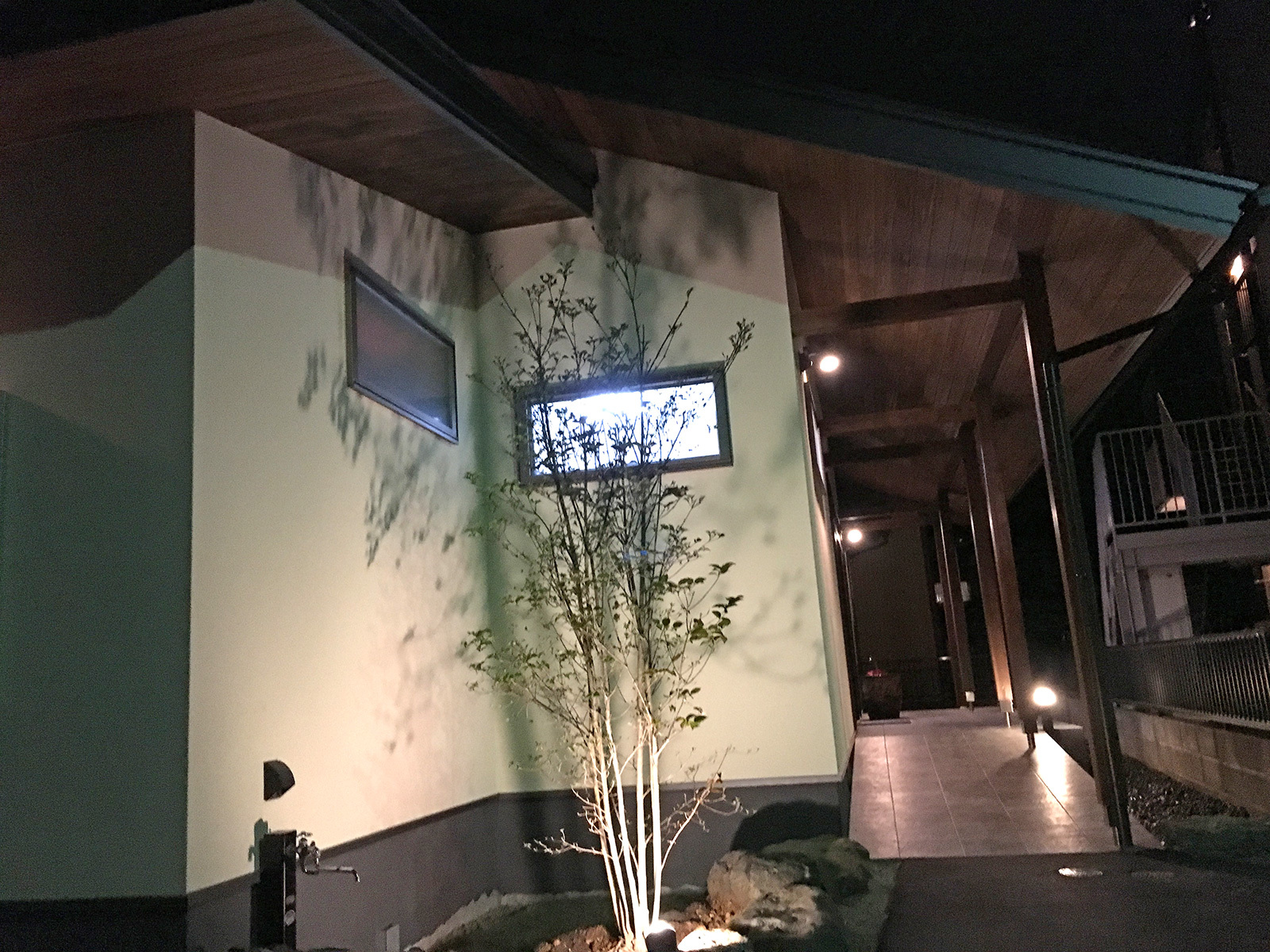 29坪+4(ロフト)の決して広い家ではありませんが、TV台を埋め込んだり、収納を増やす事によって、広さを感じられる家になりました。また、照明、カーテン、スイッチプレート、鏡、タオル掛けなど、施主さんのこだわりが感じられる素敵な家になりました。