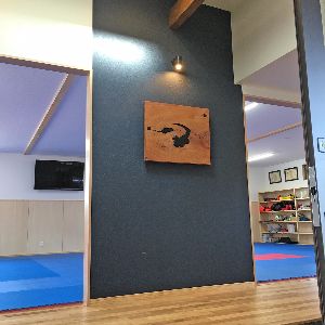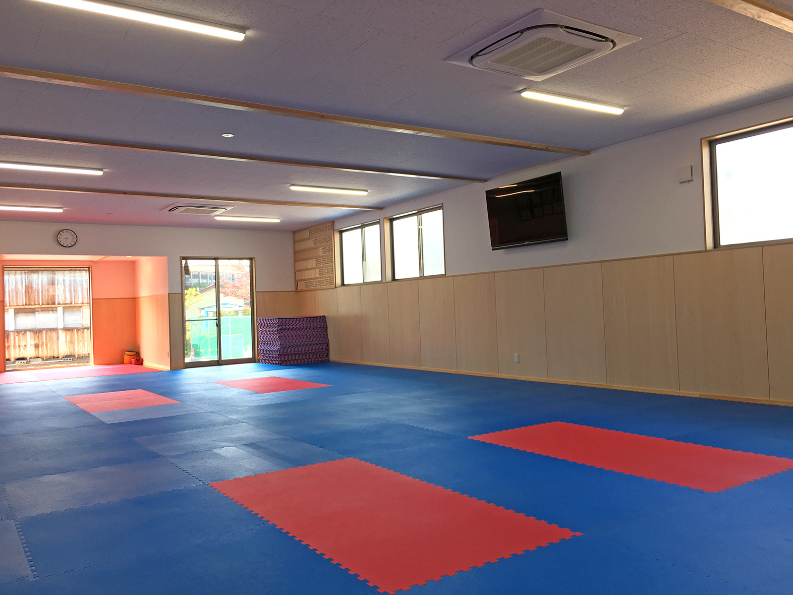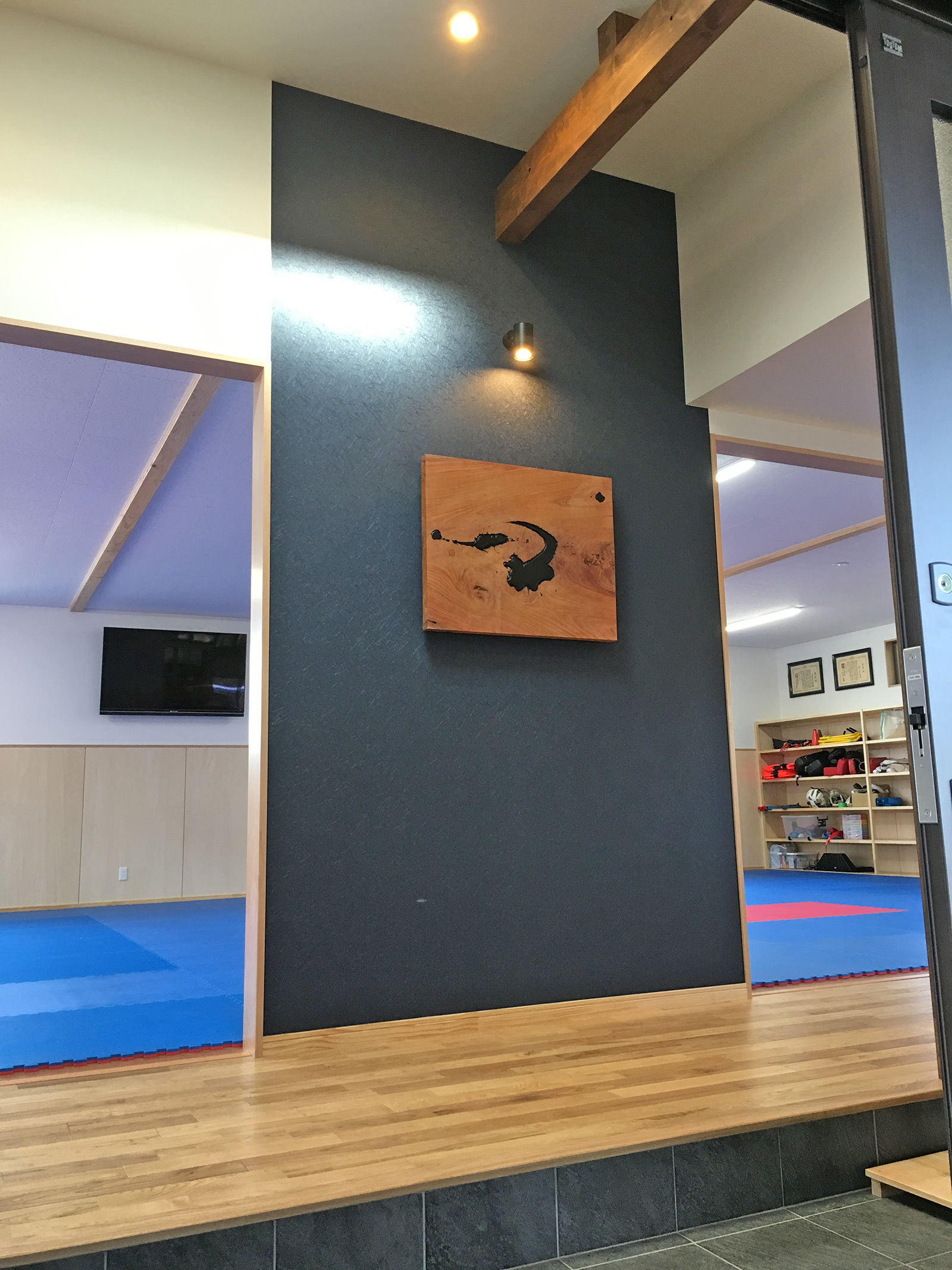 限られた敷地を有効利用する事と、稽古を受ける人、見学に来る人の動線を考えました。初めて道場に来られた方に気軽に見てもらえる用に大きい窓も付けました。
