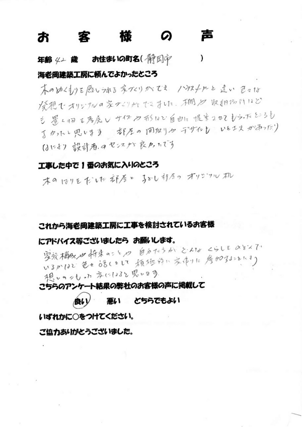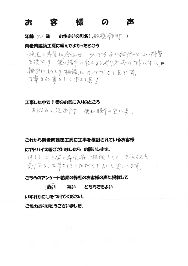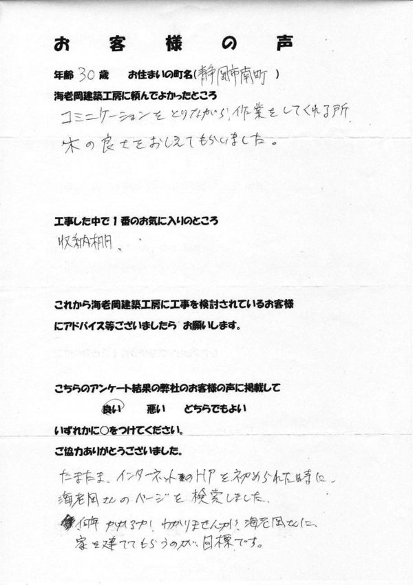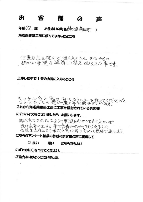 施工させていただいた皆様よりご感想(お客様の声)をいただきました。